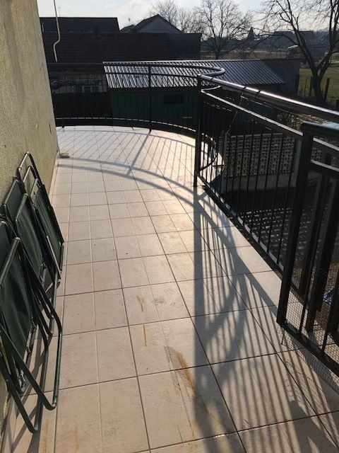 Dužinom cijelog stana proteže se terasa odakle se spušta do ograđenog, prostranog dvorišta.