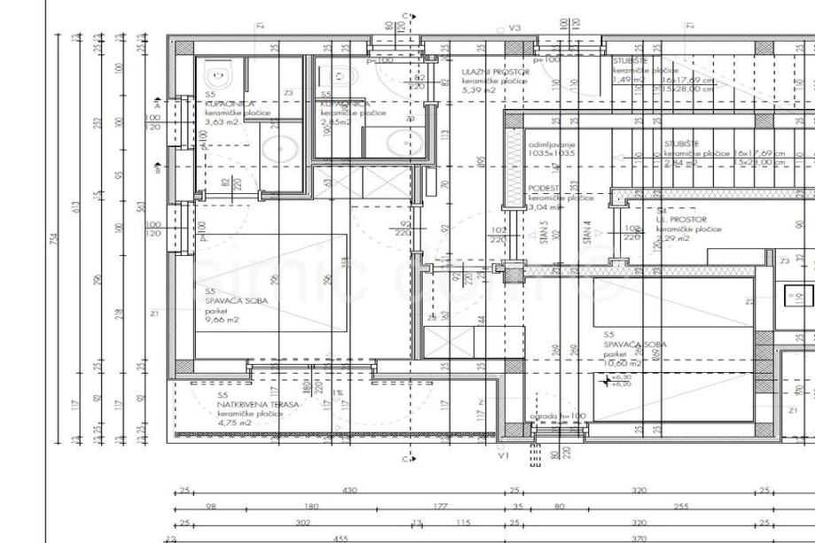 Posredujemo u prodaji apartmana smještenog u modernoj novogradnji u izrazito mirnoj ulici u Primoštenu, ali samo 10 minuta pješice do svih sadržaja i plaže, odnosno 300 metara zračne linije od kristalno čistog Jadranskog mora i 900 metara pješke od poznate šljunčane plaze u Primoštenu. Zgrada se sastoji od 5 modernih apartmana. Penthouse apartman oznake S5 je dvoetažan i nalazi se na drugom katu. Ima ukupnu neto korisnu površinu od 92 m2 sa svim pripatcima. Unutarnja površina apartmana je 61,79 m2 te ima još preko 70 m2 podne površine terasa s vrhunskim pogledom na more. Na donjoj etaži nalaze se dvije spavaće sobe, od kojih jedna ima privatnu kupaonicu, još jednu kupaonicu i izlaz na natkrivenu terasu. Unutarnje stepenice vode do gornje etaže, gdje se prostire prostrana kuhinja s blagovaonicom i dnevnim boravkom u jednom otvorenom prostoru. Ova etaža je okružena terasama s tri strane koje ukupno imaju 66,03 m2, pružajući obilje svjetlosti i mogućnosti za vanjsko uživanje, od kojih su neke i natkrivene. Ova novogradnja opremljena je vanjskom stiropor fasadom, PVC stolarijom s ALU roletama na električni pogon, podno grijanje u kupaonicama, inverter klima uređajima za grijanje i hlađenje, protuprovalnim ulaznim vratima, vrhunskom keramikom. Ovaj jedinstveni raspored stvara udoban i praktičan životni prostor za uživanje u prekrasnom okruženju Primoštena. Stanu pripada i jedno parkirno mjesto uključeno u cijenu. Očekivani završetak je ljeto 2025. godine.