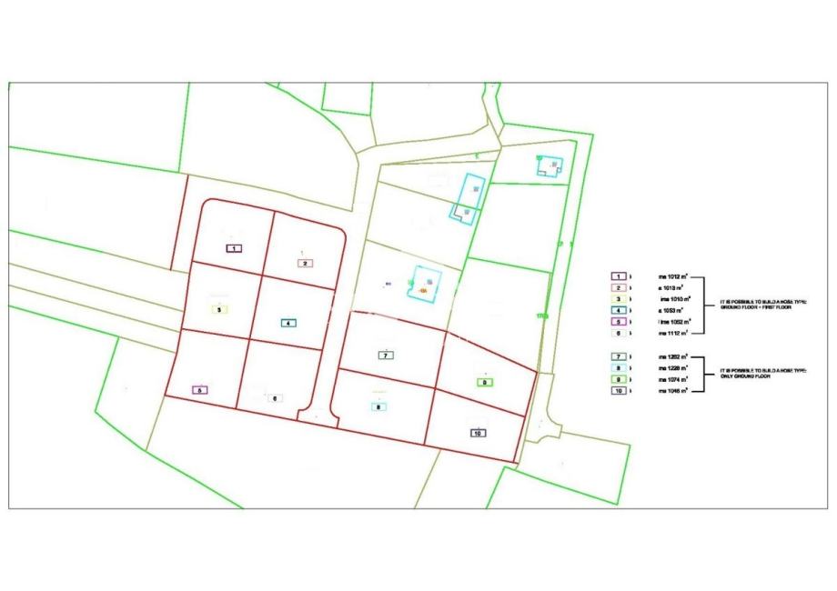 -Na parcelama oznake od 1 do 6 moguća je gradnja kuća tipa P + 1 (prizemlje + kat sa eventualnim podrumom),