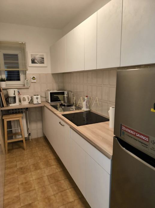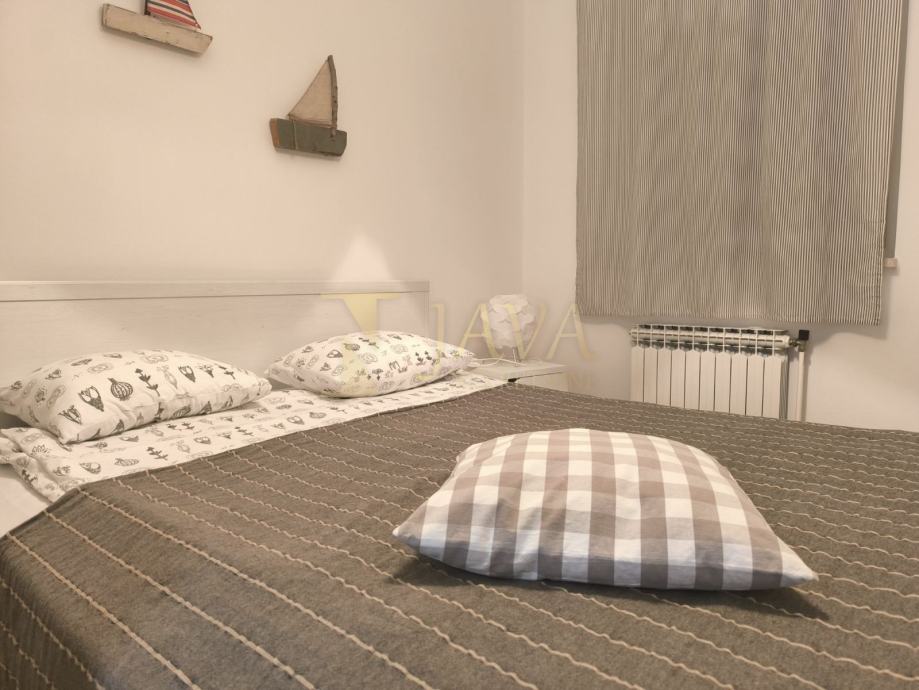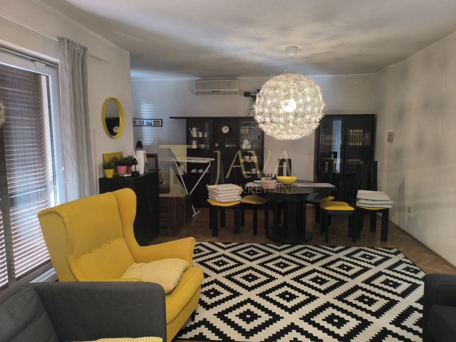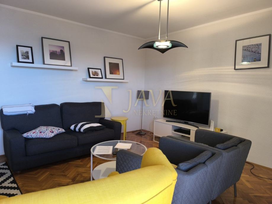 Stan je potpuno namješten, s kvalitetnim namještajem po mjeri i neutralnim tonovima koji stvaraju elegantan i prozračan ambijent