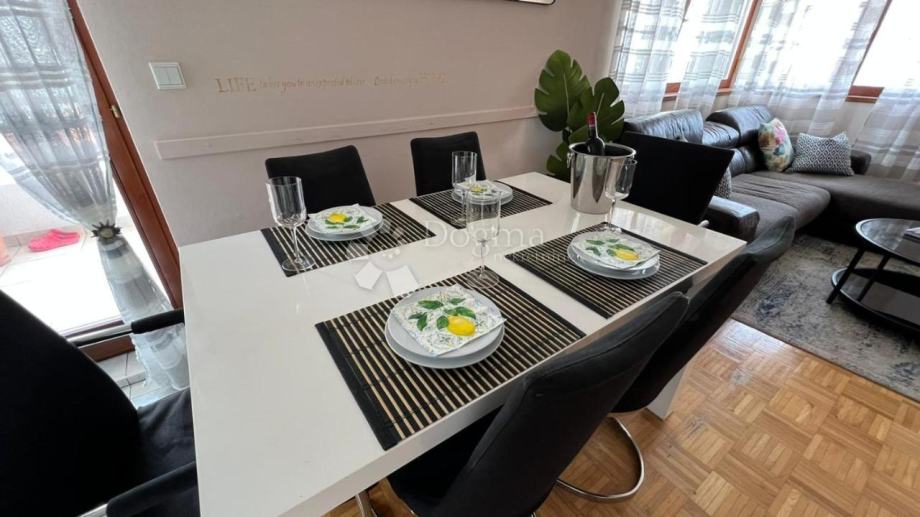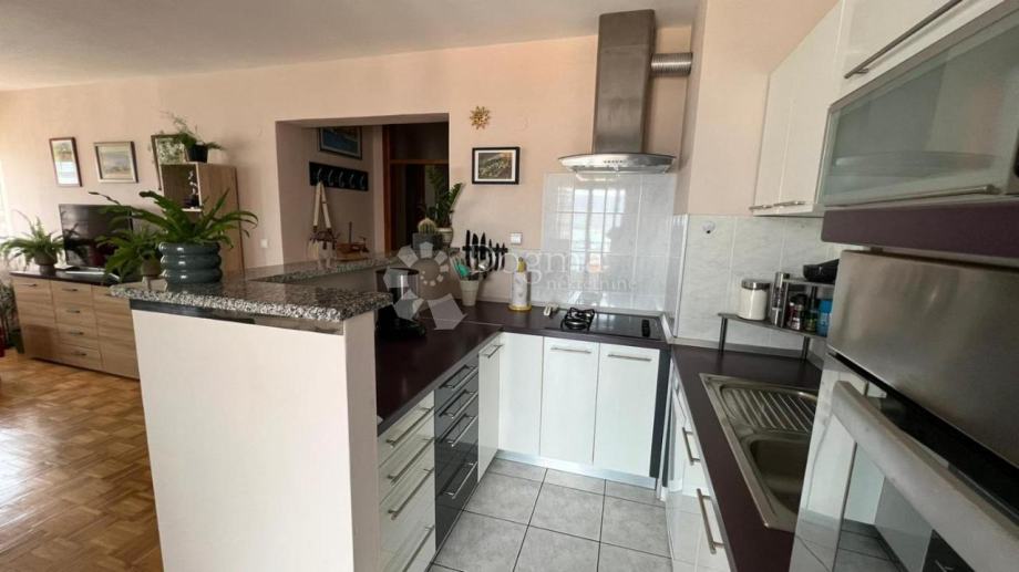 Stan se sastoji od 3 sobe, kupaonice, kuhinje, prostranog dnevnog boravka, ostave te balkona s prekrasnim pogledom na more i predivan kaštelanski zaljev i grad Split.