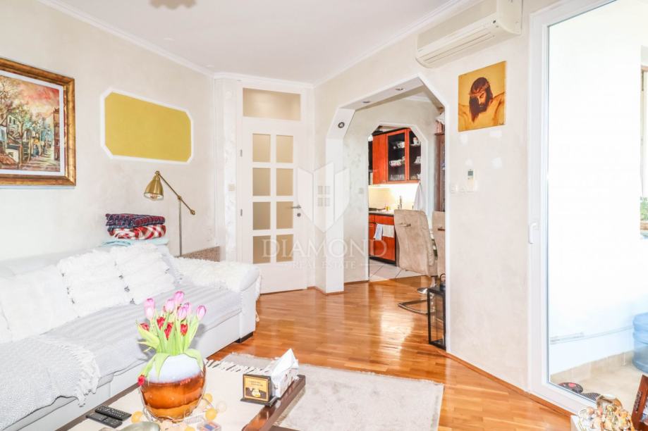 Stan se sastoji od svijetlog i prozračnog dnevnog boravka s velikim prozorima i izlazom na balkon, moderne kuhinje s blagovaonicom, vrhunski uređene kupaonice, praktične ostave i velikog hodnika koji omogućuje odvojeni ulazak u svaku prostoriju te dvije prostrane spavaće sobe, obje s izlazom na privatnu lođu. Veliki prozori i orijentacija stana osiguravaju obilje prirodnog svjetla tijekom cijelog dana, stvarajući ugodnu i toplu atmosferu.