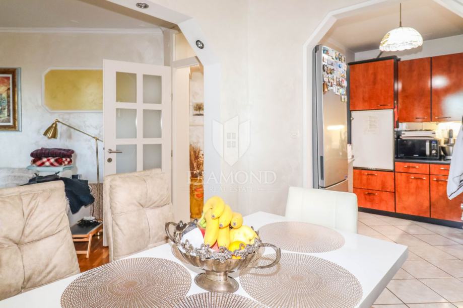 Stan je opremljen visokokvalitetnim materijalima i modernim sustavima za grijanje i hlađenje, uključujući klima uređaje i norveške radijatore, što jamči udobnost u svim godišnjim dobima. Uključuje i privatni parking te drvarnicu, što dodatno povećava praktičnost.