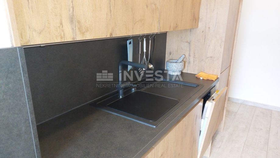 Uređenje interijera povjereno je profesionalnoj agenciji, što je rezultiralo izuzetno skladnim i kvalitetnim prostorom. Kuhinja je renomiranog brenda Dan Küche, a sjedeća garnitura i ostali namještaj također su proizvodi poznatih kuća.