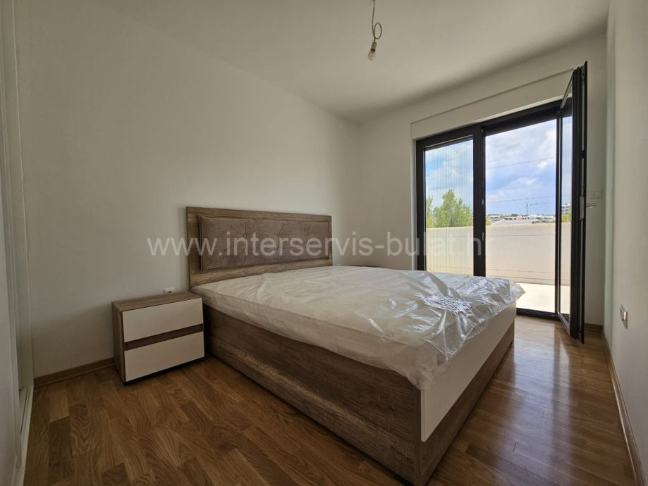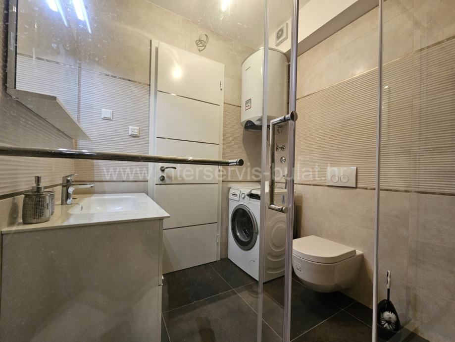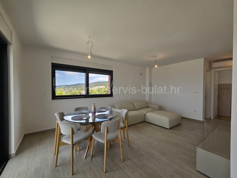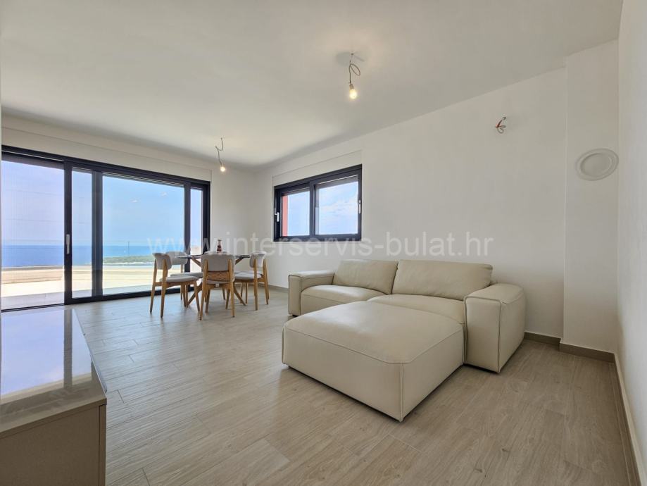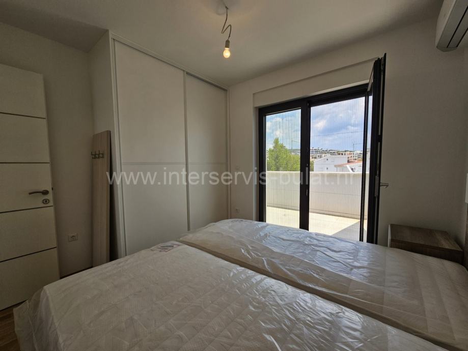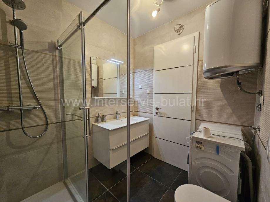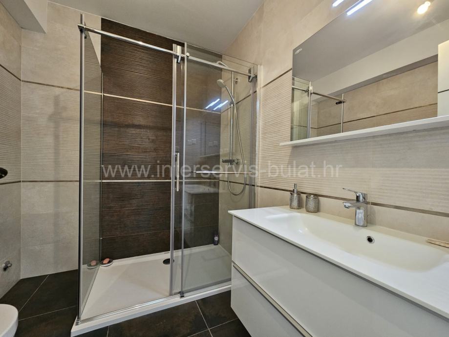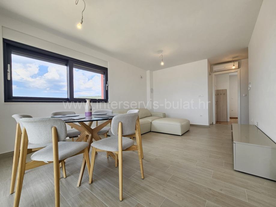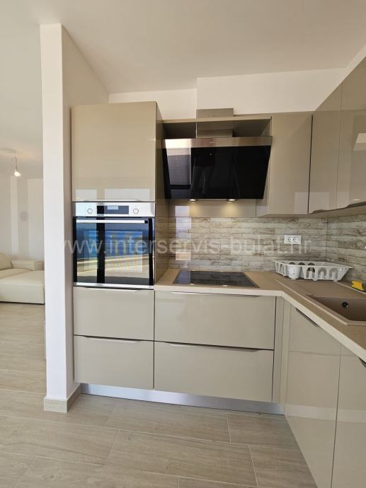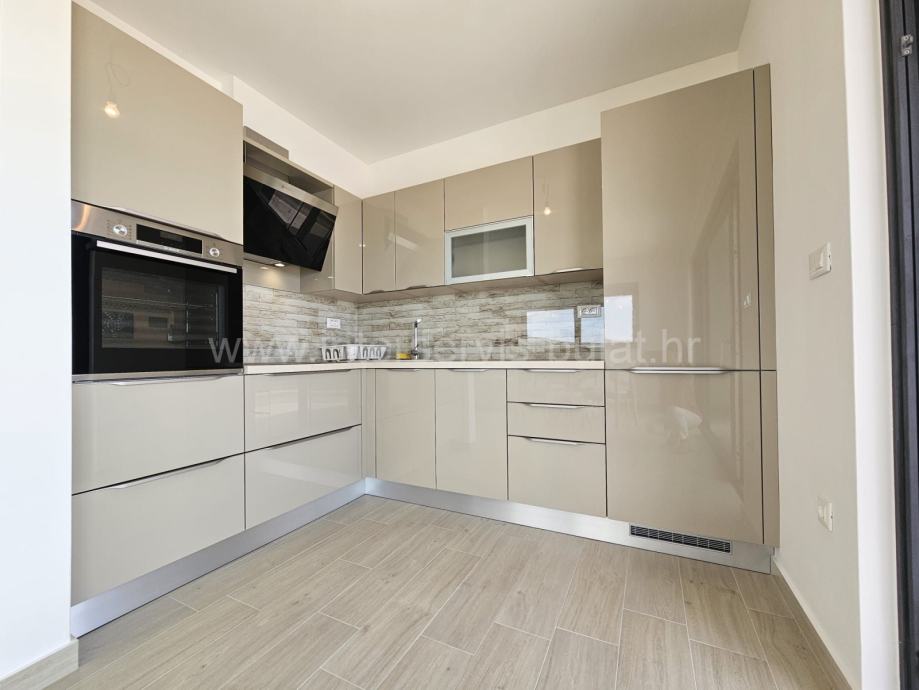 Stan je opremljen novim (nerabljenim) namještajem, ugradbenom kuhinjom sa svim uređajima, ima podno grijanje u boravku i kupaonici te tri klima uređaja.
