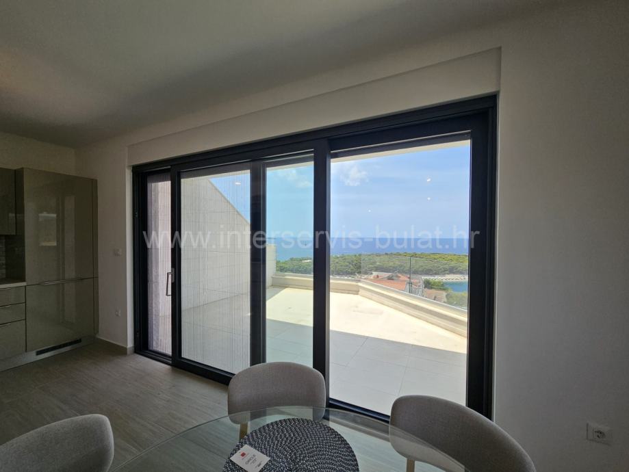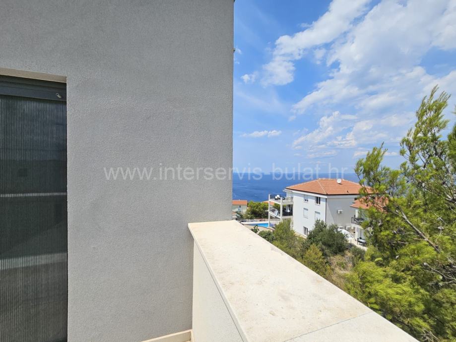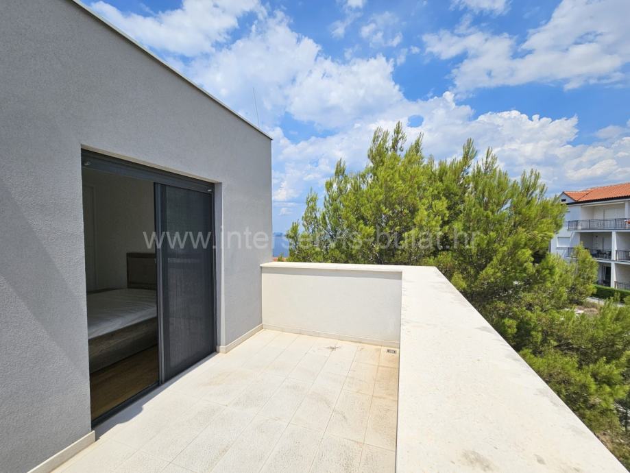 Raspored stana čine: hodnik, kupaonica, 2 spavaće sobe sa zajedničkom terasom 12m2, dnevni boravak s kuhinjom i blagovaonicom iz kojih se pristupa južnoj terasi 18m2 s fenomenalnim pogledom na more.