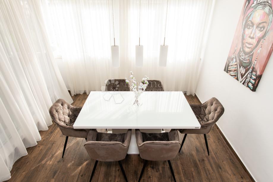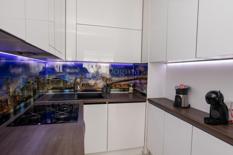 Stan se odlikuje izvrsnom izolacijom, zbog koje je zimi temperatura ugodna čak i bez korištenja grijanja, dok plinsko centralno grijanje omogućava dodatnu toplinu po potrebi. Prostrani dnevni boravak, koji je povezan s blagovaonicom i kuhinjom, stvara otvoren i svijetao prostor za obiteljska okupljanja i druženja. Stan raspolaže s dvije prostrane spavaće sobe, hodnikom i modernom kupaonicom koja je opremljena kvalitetnim sanitarijama, dok su visokokvalitetne pločice uvezene iz Italije.