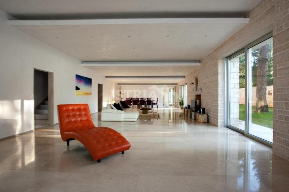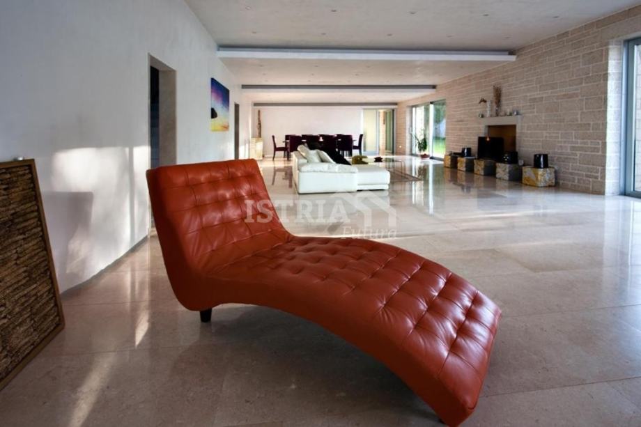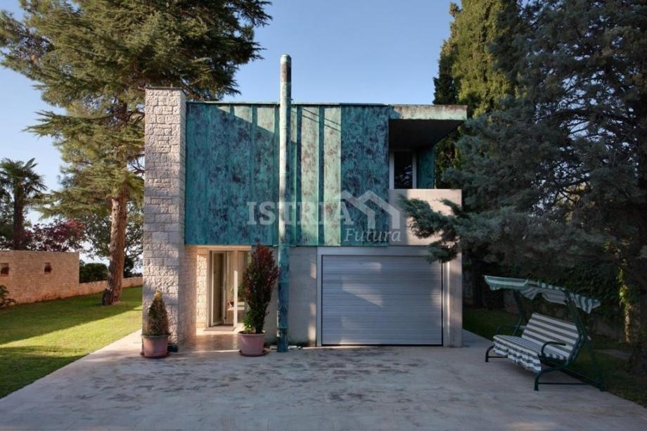 Iako je vila potpuno moderna, savršeno je uklopljena u okoliš i krajolik Istre, a pri gradnji su korišteni ekološki materijali.