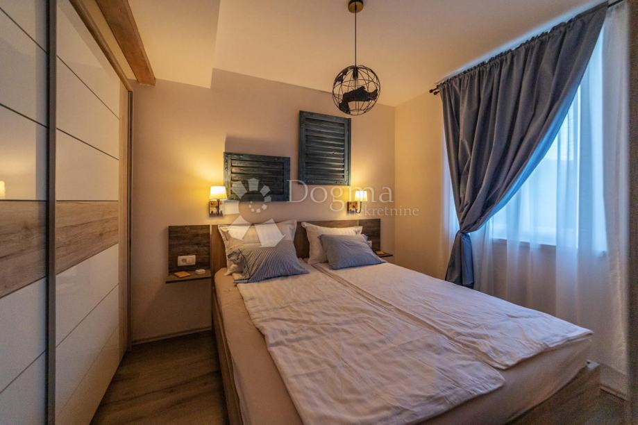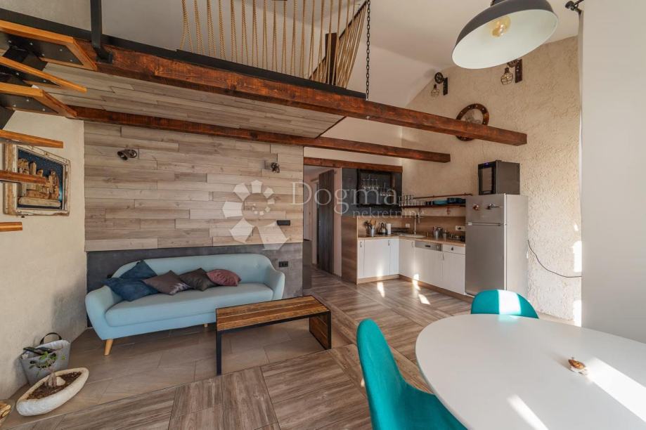 U tom lijepom mjestu prodaje se prekrasna kuća sa tri apartmana i pogledom na more. Kuća je smještena na mirnom predjelu tako da nema nikakve buke niti gužve, a opet je svega 500 m od škole, ambulante, pošte i ostalih sadržaja. Od mora je udaljena otprilike 800 m i nudi spektakularan pogled na cijelo Novigradsko more.