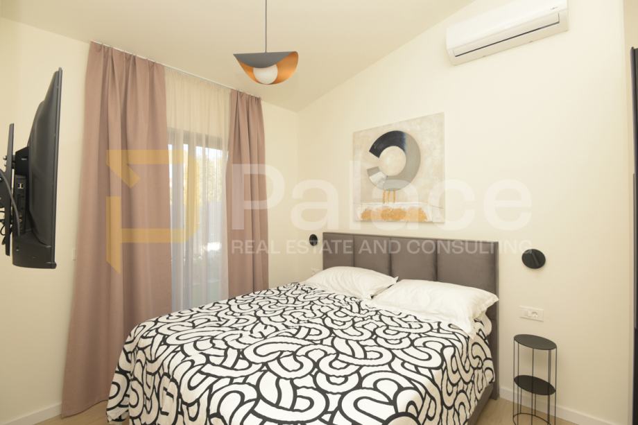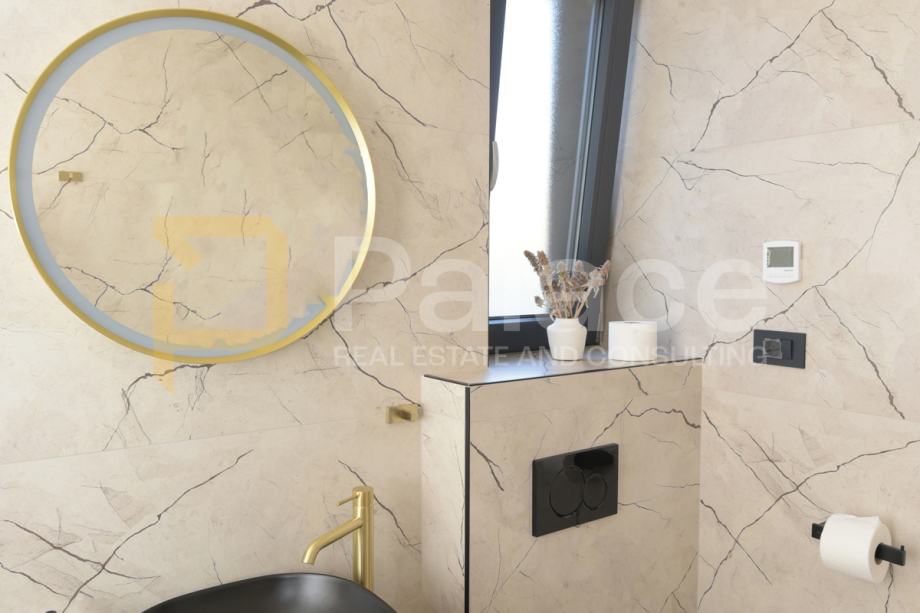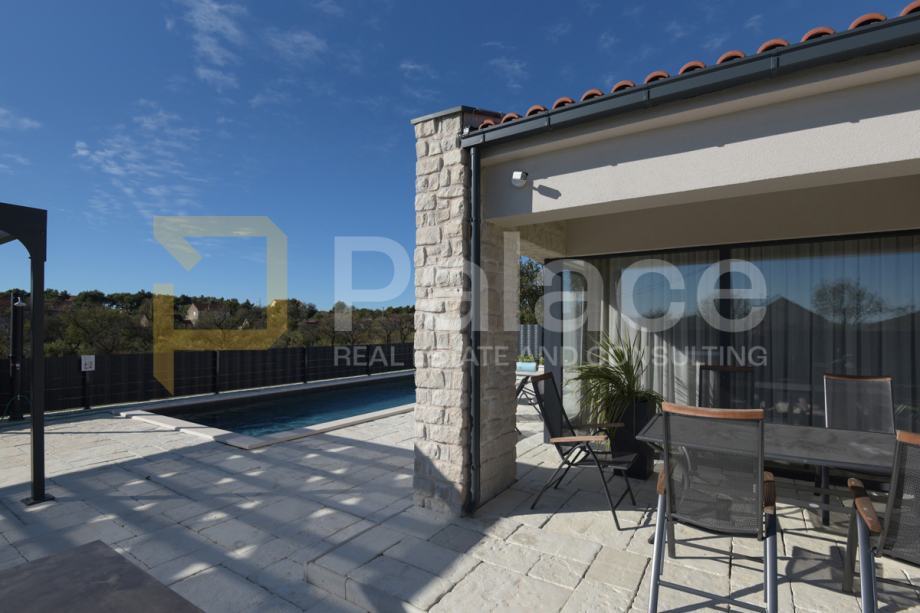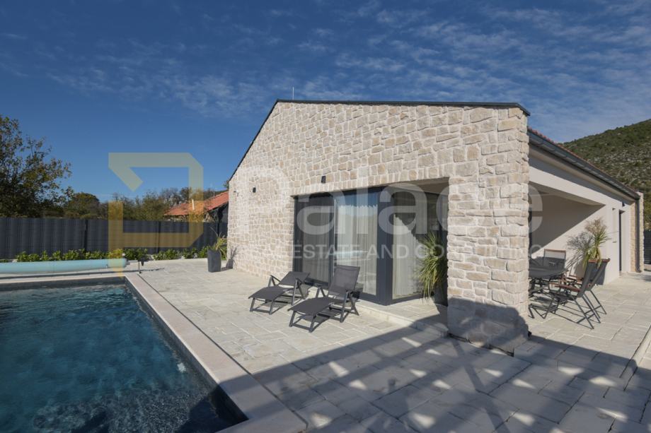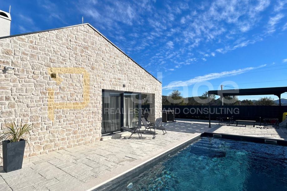 Pri gradnji su korišteni najkvalitetniji materijali. Isto tako svaka prostorija je klimatizirana i podno grijanje provedeno po cijeloj kući. Kuća je u potpunosti namještena te se kao takva prodaje. Odlična nekretnina, na lokaciji koja pruža mir i doticaj s prirodom, na samo 11 km od Šibenika.