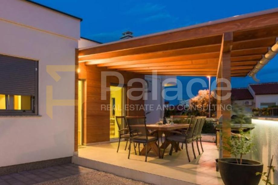 Parcela je cjelokupne površine 449 m2 te se na njoj nalazi i predivan bazen, kao i roštilj, natkriveni prostor za druženje i nekoliko maslina.