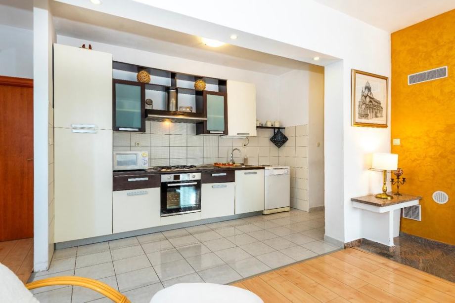 Kuhinja s prostranom blagovaonicom i dnevnim boravkom.