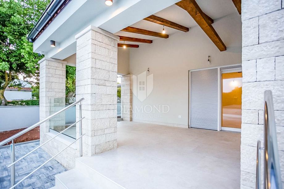 Prostrana unutrašnjost od 147 kvadratnih metara obuhvaća četiri spavaće sobe, od kojih dvije imaju vlastite kupaonice, što pruža dodatnu privatnost i udobnost. Uz to, kuća ima odvojeni WC, hodnik, dnevni boravak i kuhinju te galeriju koja dodaje dodatni osjećaj prostranosti. Dvije terase od ukupno 47 kvadratnih metara savršene su za opuštanje i druženje na otvorenom.