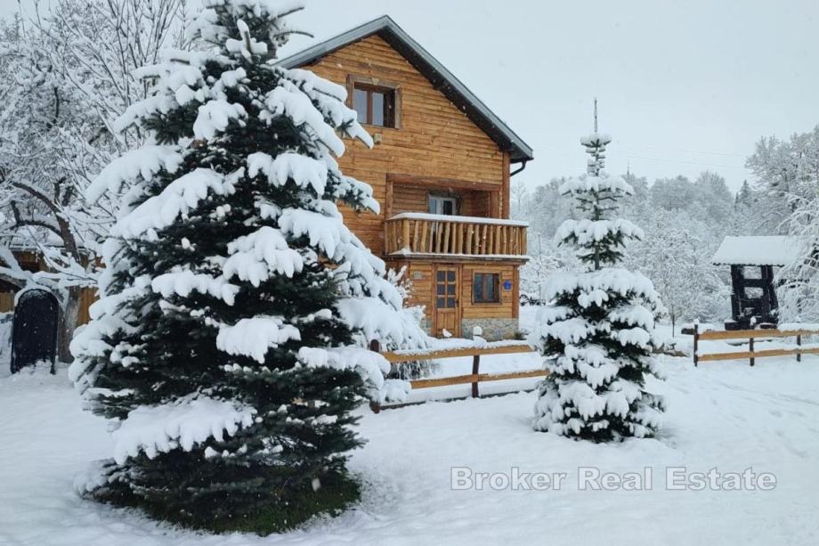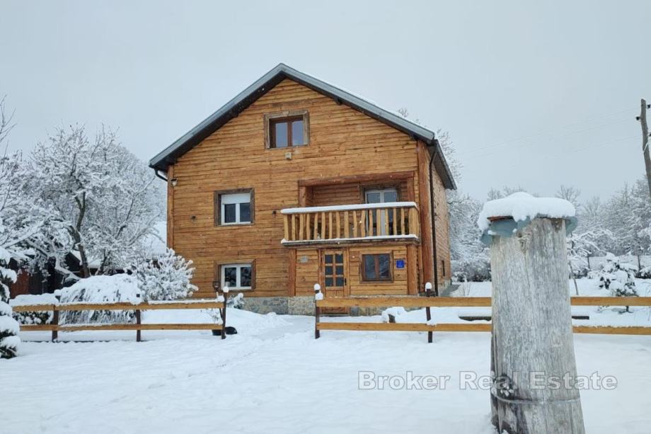 Glavna kuća u prizemlju ima 3 spavaće sobe, 2 kupatila te kuhinju s dnevnim prostorom i kaminom.