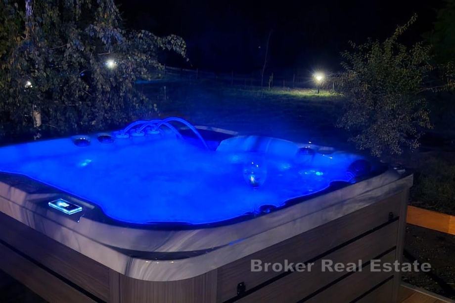 U vanjskom dijelu imanja nalazi se i jacuzzi, idealan za opuštanje i uživanje u prirodnom okruženju.