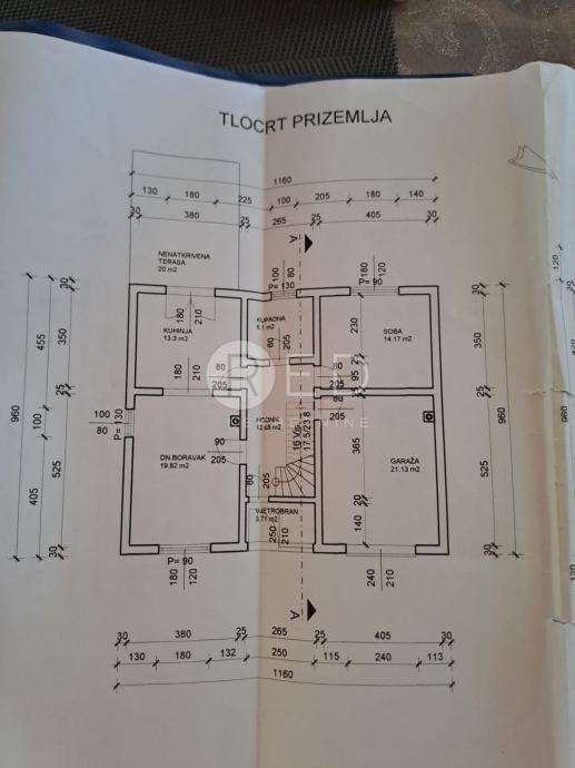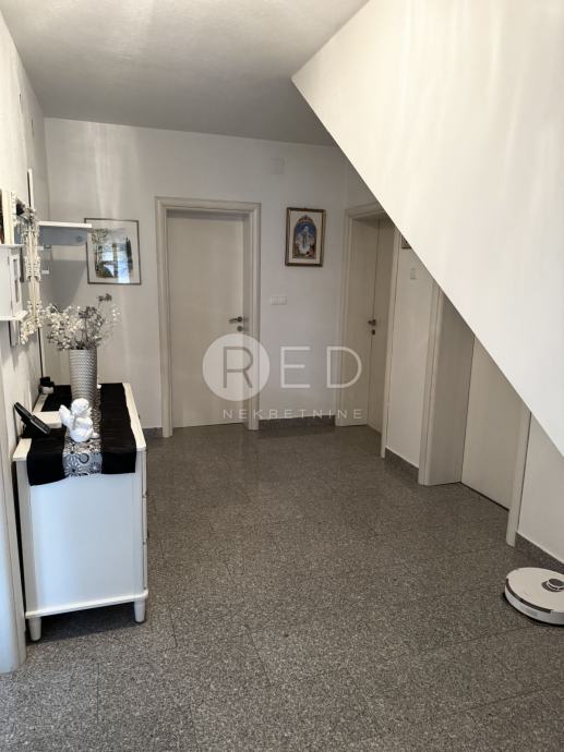 Prizemlje se sastoji od kuhinje s blagovaonicom iz koje se izlazi na ugodnu zatvorenu terasu s klima uređajem, od dnevnog boravka, hodnika, kupaonice, spavaće sobe, dodatne prostrane prostorije (trenutno uređena kao još jedna kuhinja ) i ulaznog prostora.