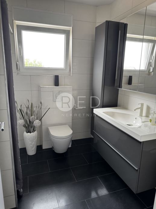Potkrovlje je u rohbau i ima dovoljnu visinu i prozračnost za uređenje dodatnog ugodnog životnog prostora.