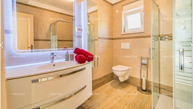 Kuća je kvalitetno opremljena sa podnim grijanjem, klimama, bazenom i 5 parking mjesta
