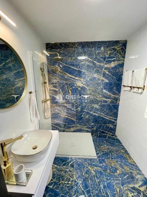 Prizemlje: Otvoren i svijetao dnevni boravak povezan s moderno opremljenom kuhinjom i blagovaonicom, udobna spavaća soba s vlastitom kupaonicom te luksuzna wellness zona sa saunom i hidromasažnom kadom. Iz dnevnog dijela izlazi se na natkrivenu terasu od 35 m², idealnu za uživanje na svježem zraku.