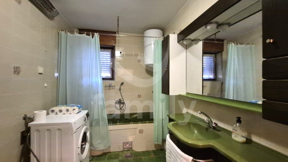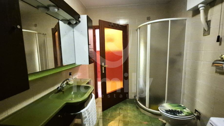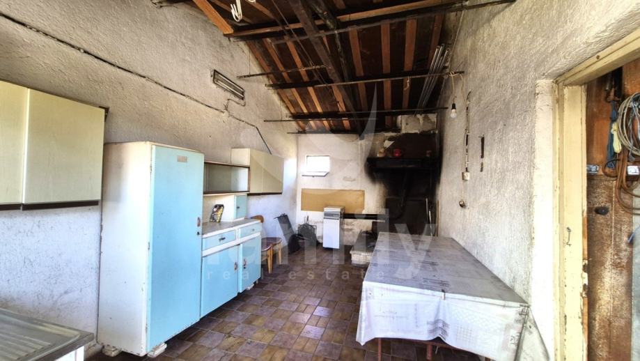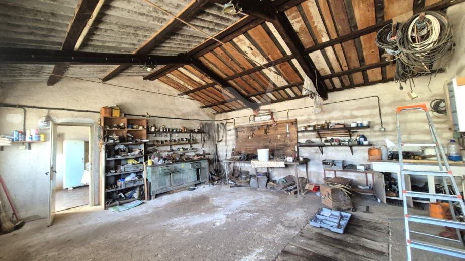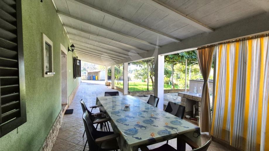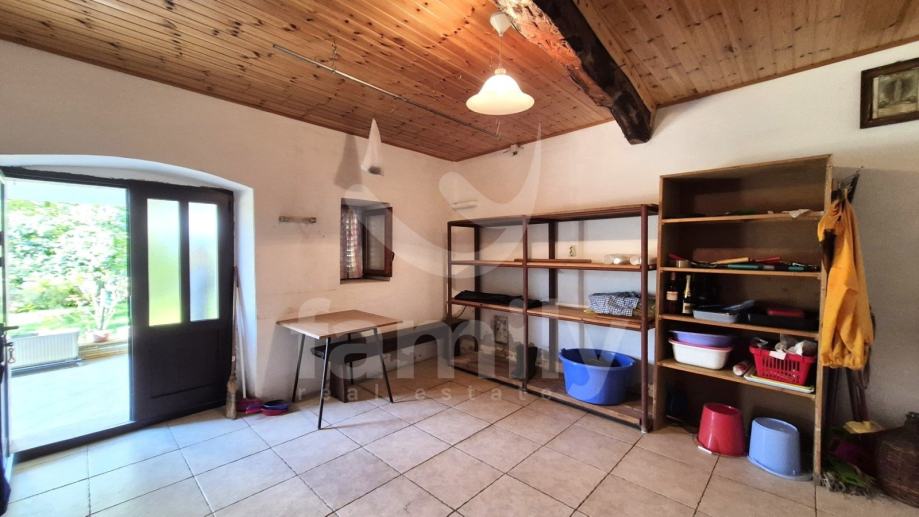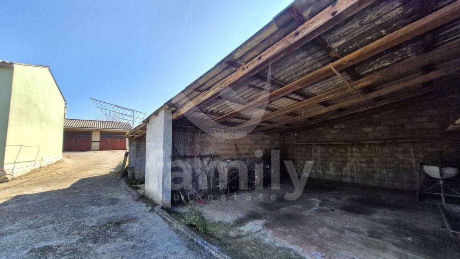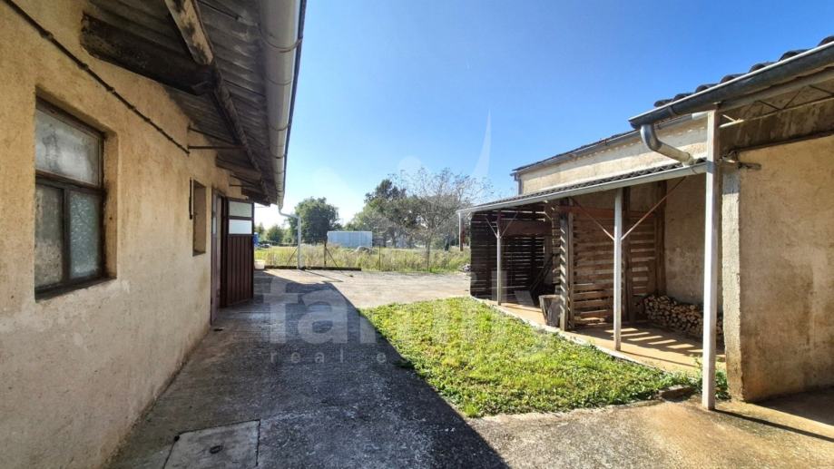 Nekretnina se nalazi u mirnijem dijelu svega nekoliko minuta udaljeno od naseljenijeg dijela Žminja. Nekretnina se nalazi uz prometnicu a dovoljno je udaljeno od buke i pruža se lijepi pogled na zelenilo. Ispred prostrane kuće od svega 200 m2 i pomoćnih objekata sa kojim sveukupna površina od 357 m2 zaista ovu nekretninu čini posebnom. Ulaskom na česticu nalazi se zasebni samostojeći objekt koji služi kao prostor za kuhanje i druženje sa kaminom. Objekt je funkcijonalan i lijepog je izgleda, obloženo u kamenu kao autohtona kućica. Glavni prostrani objekt ispred posjeduje veliku nadstrešnicu gdje se može boraviti i opuštati bez obzira na vremenske prilike. Ulaskom u kuću u prizemlju imamo prostor gdje su nam ormari i prostrana kuhinja koja služi i kao blagavaonica i soba koja je malo odvojena i služi kao dnevni boravak. U prizemlju je postavljen klima uređaj kao i peć na drva koja se nalazi u kuhinji. Kupaonica je također u prizemlju, dovoljno je prostrana i posjeduje kadu i tuš kabinu. Podovi na prvom katu su djelomično drveni a djelomično obloženi pločicama. Odlaskom na gornju etažu drveno stepenište nas vodi u prostran dio predsoblja. Na gornjem dijelu imamo prvu prostranu spavaću sobu gdje su podovi obloženi laminatom, a soba je izuzetno prostrana i idealne orijentacije sa pogledom na zelenilo. Druge dvije spavaće sobe su također prostrane i komforne za boravak. Podovi su obloženi daskama a pogled sa prozora je također na zelenilo. Duž istog hodnika koji nas vodi prema spavaćoj sobi i imamo i direktan izlaz na terasu gdje nam se nalazi bunar i pogled na ostatak dijela čestice na stražnjem dijelu kuće. Iz istog hodnika imamo stepenište koje nas vodi na potkrovlje koje ima nove betonirane podloge i krov napravljen na novo prije nekoliko godina. U spomenutom dijelu nekretnine nam se nalaze dva veća prostora i jedan manji. Svaki prostor zasebno posjeduje nekoliko manjih dnevnih otvora. Ulazna vrata su PVC obložena kamenom po rubovima. U ostatku nekretnine je postavljena drvena stolarija i škure. Veći dio kuće ima obnovljenu fasadu 2017. godine, te iste godine kad je napravljen i krov. Unutar kuće se nalazi veoma prostrano spremište sa zasebnim ulazom. Posjedujemo još jedan prostor koji je uređen sa postavljenim pločicama. U sklopu okućnice je posađeno nekoliko voćaka. Svakako je bitna još jedna upisana garaža od 88 m2 koja je prostrana sa 3 zasebna ulaza i prostorije sa više funkcijonalnih prostorija različitih namjena su benefit spomenute nekretnine.