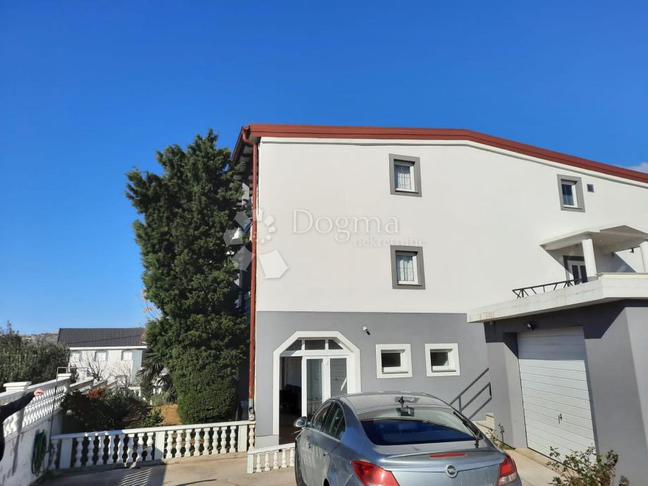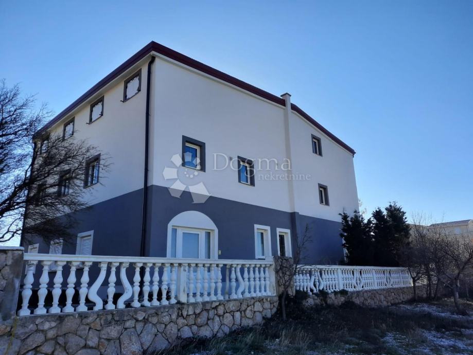 Na drugom katu stan je od 120 m2 da dvije spavaće sobe, velikim dnevnim boravkom, kuhinjom, blagovaonicom i prostranom terasom od oko 30m2 koja ima zadivljujući pogled na more i otok Pag.