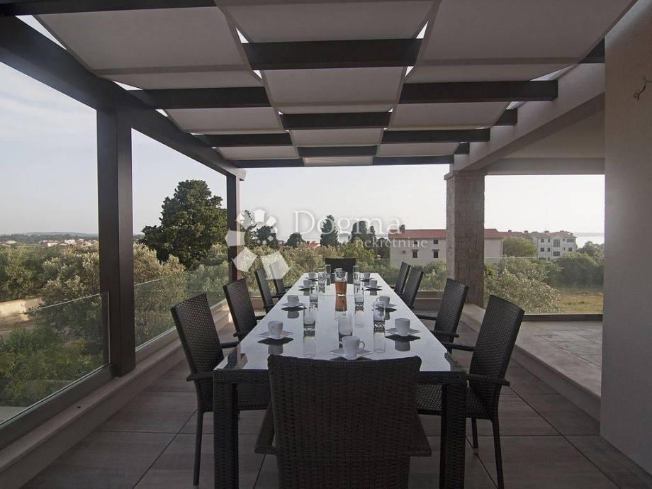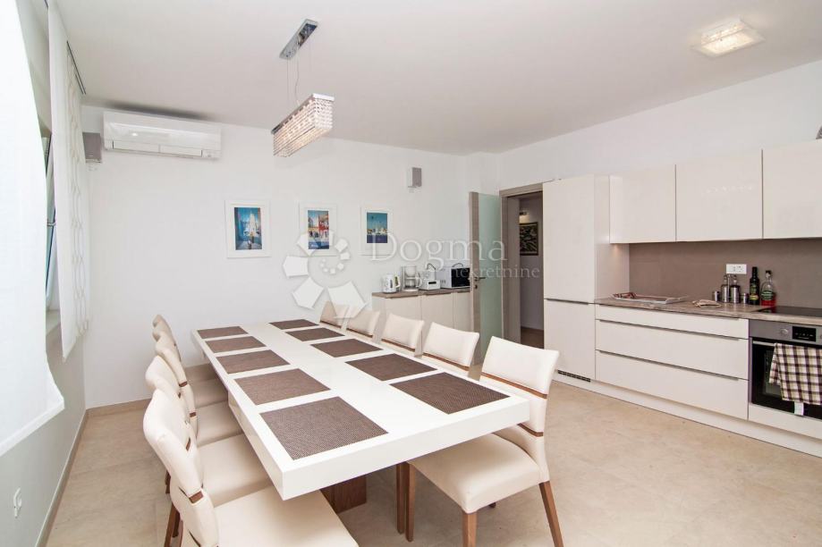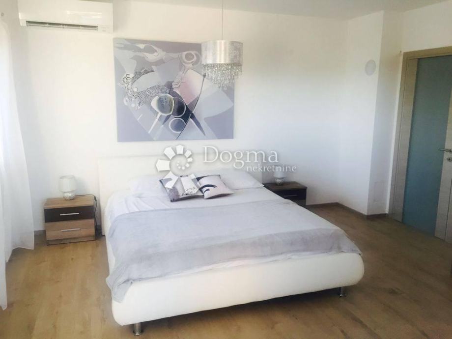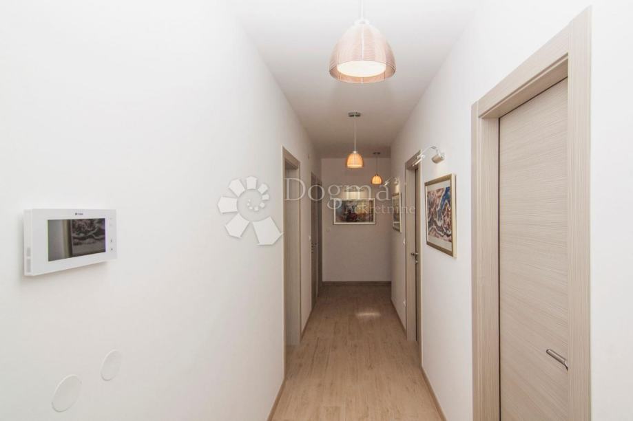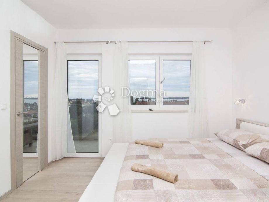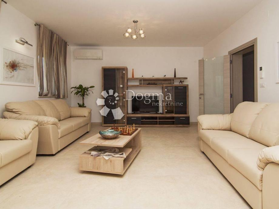 * stan površine 120m2 sastoji se od kuhinje sa izlazom na veliku natkrivenu terasu sa grillom sa koje se pruža pogled na Brijunski arhipelag, zatim 1 spavaće sobe s kupatilom i garderobom, jedne manje sobe sa terasom, 1 zasebno kupatilo i 1 nužnik.