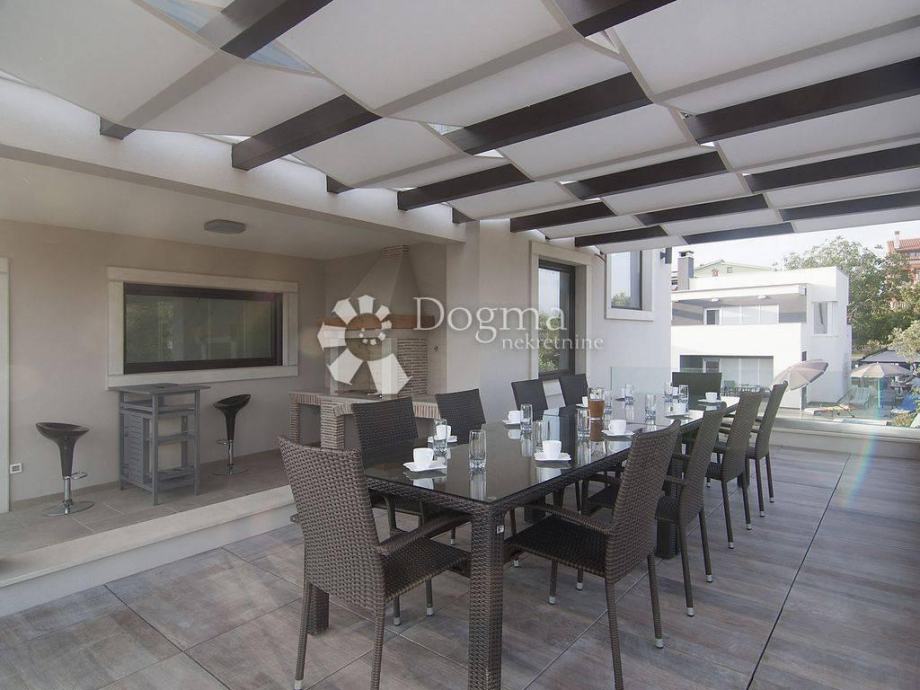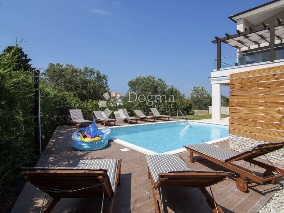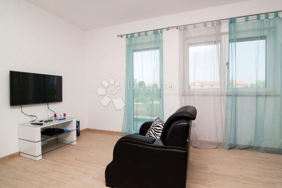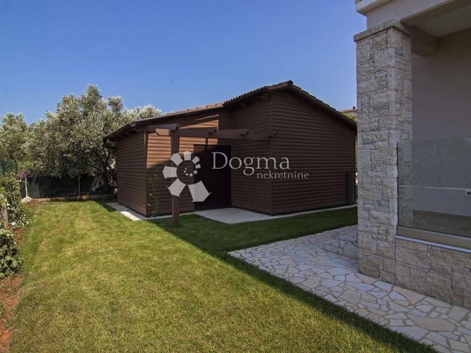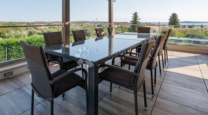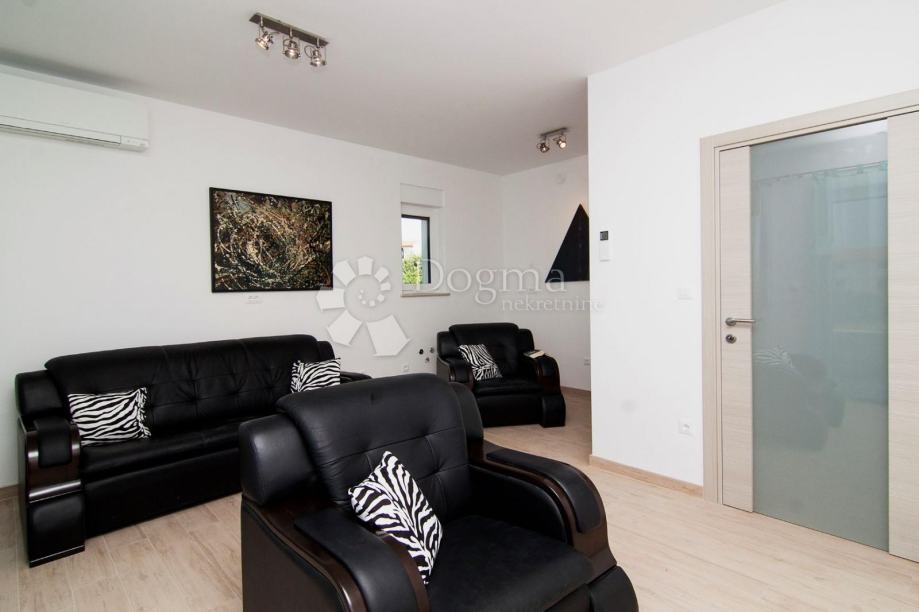* stan površine 120m2 sastoji se od kuhinje sa izlazom na veliku natkrivenu terasu sa grillom sa koje se pruža pogled na Brijunski arhipelag, zatim 1 spavaće sobe s kupatilom i garderobom, jedne manje sobe sa terasom, 1 zasebno kupatilo i 1 nužnik.