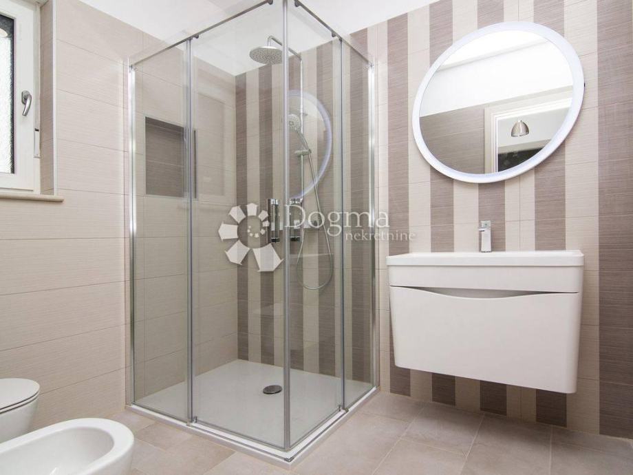 *stan površine 120m2 sastoji se od kuhinje sa izlazom na veliku natkrivenu terasu sa grillom, zatim 1 spavaće sobe s kupatilom i garderobom, jedne manje sobe sa terasom, 1 zasebno kupatilo i 1 nužnik.