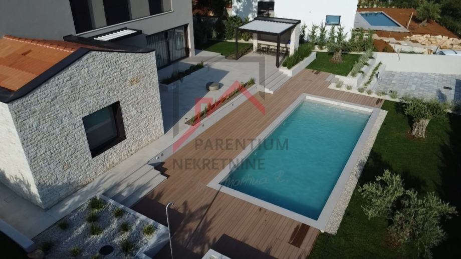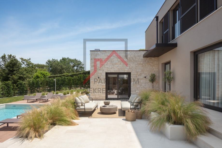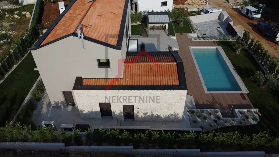 Vrhunska kvaliteta gradnje sa fasadnom izolacijom 10 i 15 cm, pvc prozorima, aluminijskim kliznim griljama u sobama, klizne staklene stijene u prizemlju, podno grijanje na vodu sa dizalicom topline Mitsubishi, sustav hlađenja, vrata filomuro, podna obloga microtopping, talijanski namještaj i rasvjeta te vrhunska oprema u interijeru kao i u exterijeru glavne su značajke po kojima se investitor vodi pri konstrukciji cijele priče.