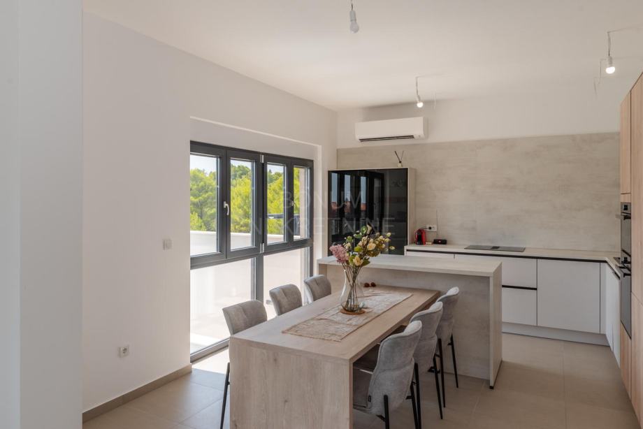 Kat kuće nudi dodatnu razinu komfora s tri prostrane spavaće sobe, dvije luksuzne kupaonice i dvije terase s još impresivnijim pogledom na more, pružajući vam savršen prostor za opuštanje.
