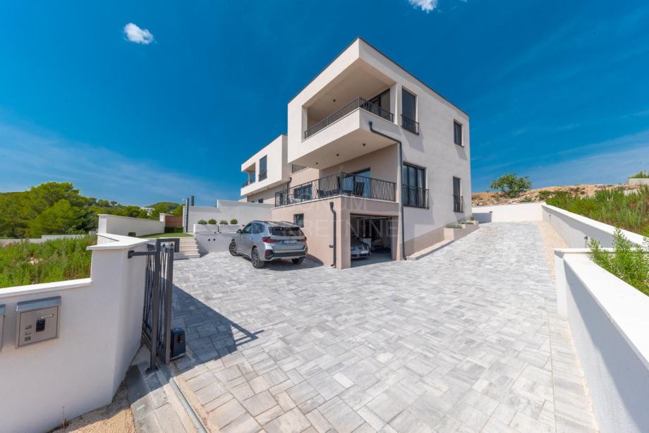 Ova atraktivna nekretnina, udaljena 750 metara od mora i 700 metara od srca Vodica, ali i 1 kilometar od Tribunja, nudi savršenu kombinaciju mira i pristupačnosti svim potrebnim sadržajima. Kuća, koja se proteže na tri etaže s ukupno 193,81 m² stambene površine, nudi sve što vam je potrebno za kvalitetan luksuzan i opuštajući život.