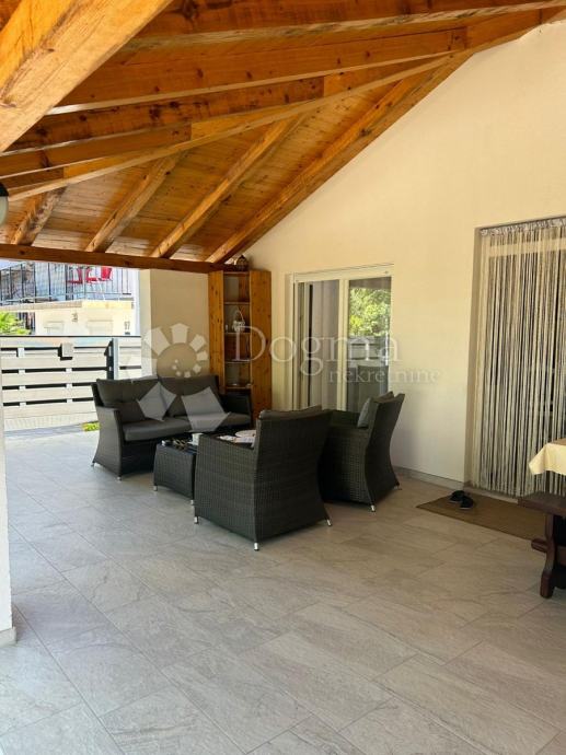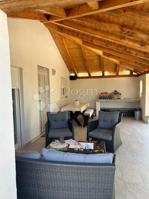 Velika natkrivena terasa površine 40 m2 predstavlja prostor za vanjsko druženje i opuštanje. Ova prostrana terasa pruža mogućnost za uživanje u svježem zraku, sunčevim zrakama i lijepom pogledu.