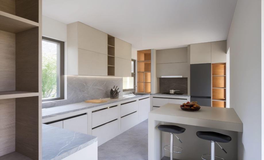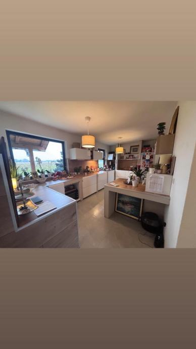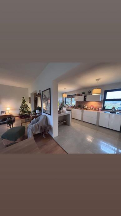 Međukat - hodnik,stubiste ,kuhinja (20m2)i dnevni boravak sa blagovaonom(40m2)sa izlazom na terasu.