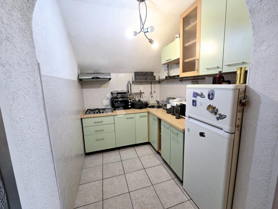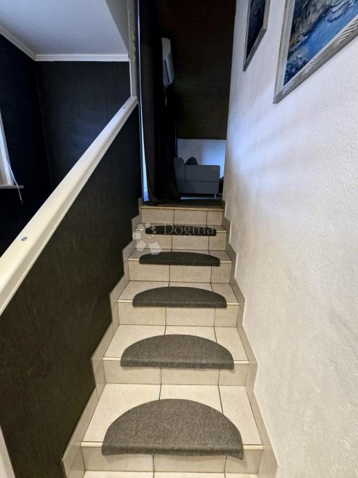 Prizemlje se sastoji od ulaznog hodnika, prostranog dnevnog boravka s kuhinjom, jedne spavaće sobe, moderne kupaonice te praktične ostave. Unutarnje stubište vodi u visoko potkrovlje, gdje se nalazi još jedan dnevni prostor s kuhinjom, dvije sobe te kupaonica koja zahtijeva uređenje. Iz dnevnog prostora u potkrovlju pruža se izlaz na prostrani balkon, idealan za opuštanje.