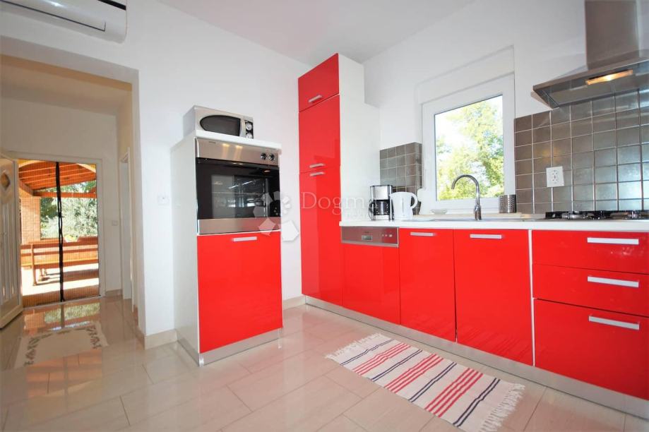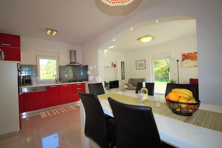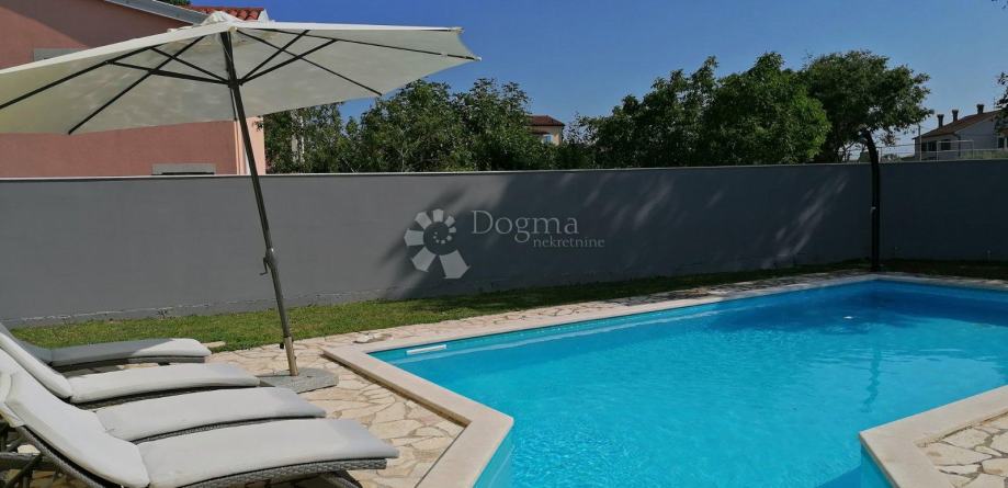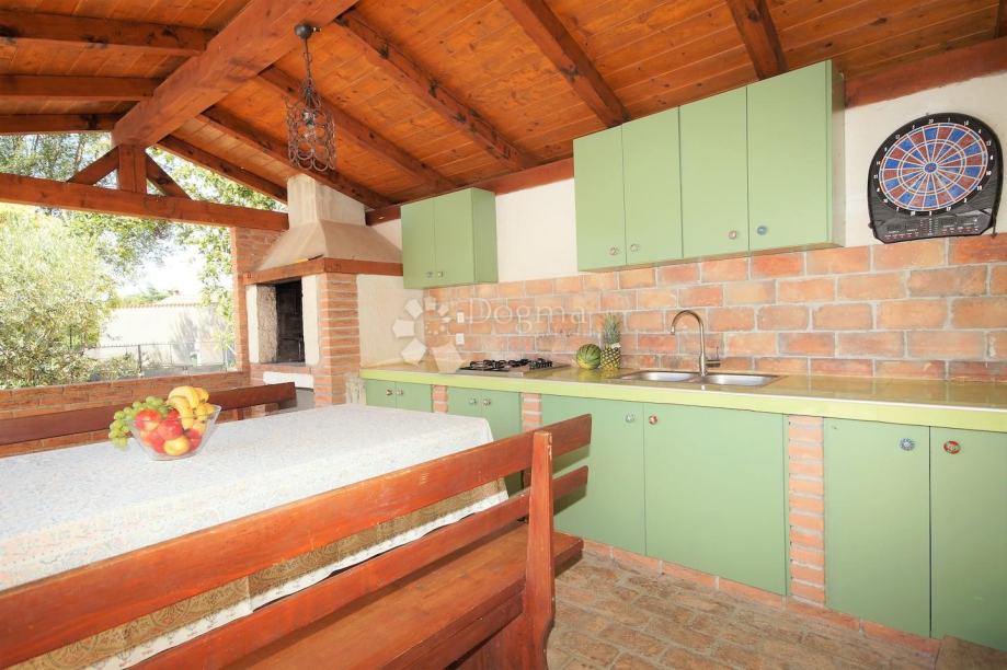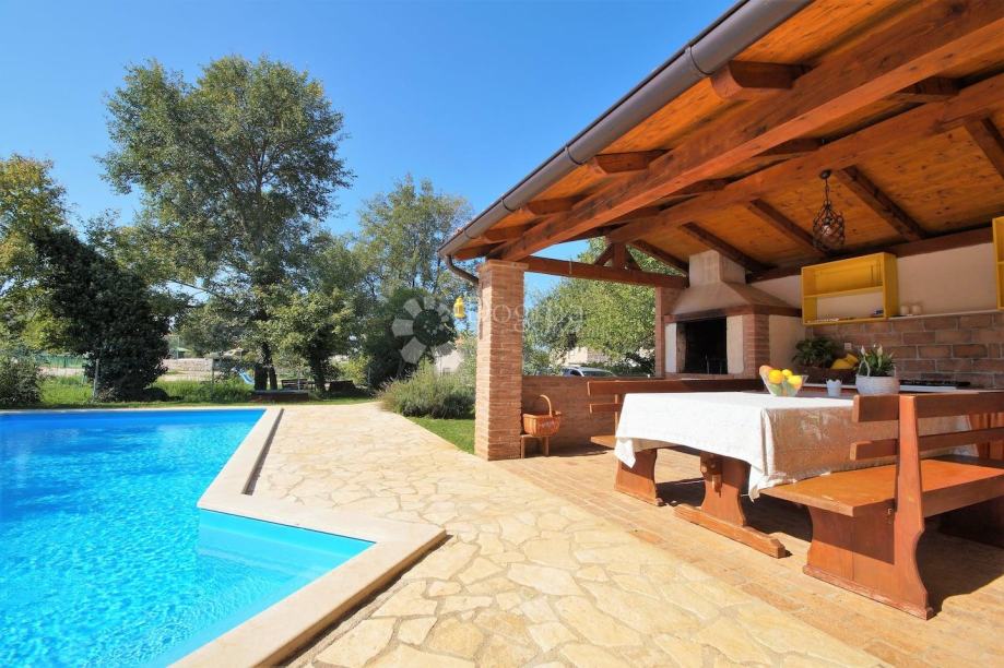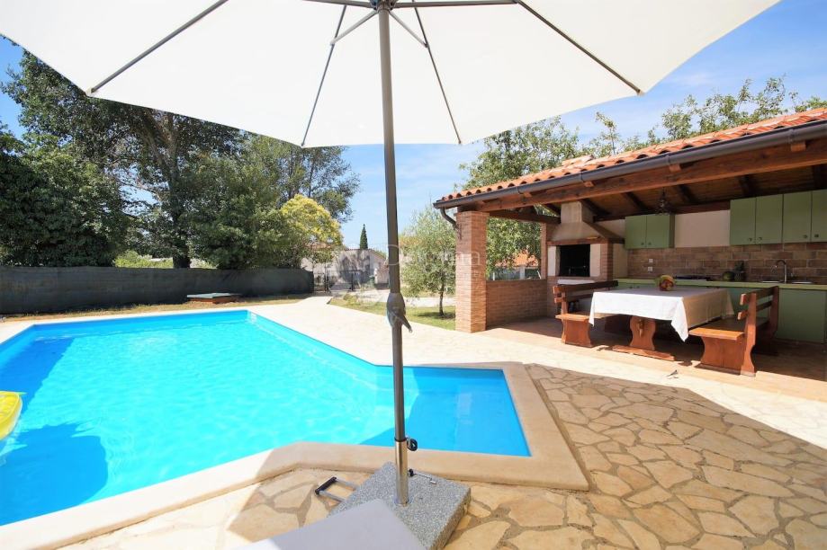 Ispred kuće se nalazi bazen površine 34 m² sa sunčalištem. U vrtu se nalazi i prostor za roštilj sa stolom za objed i privatni parking za više automobila.