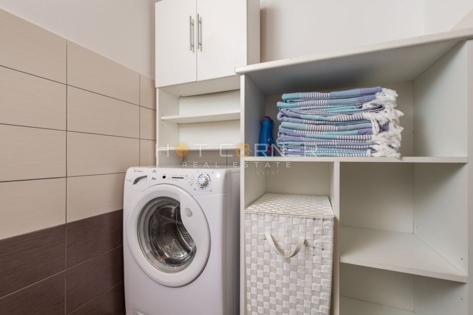 Sjajan dodatak cijelom sadržaju vile čini odvojena klimatiziran kućica u kojoj je prostor za druženje i zabavu, u kojem se nalazi biljarski stol, stol za stolni tenis i longe dio s tv-om. Na okućnici je moguće parkirati nekoliko automobila.