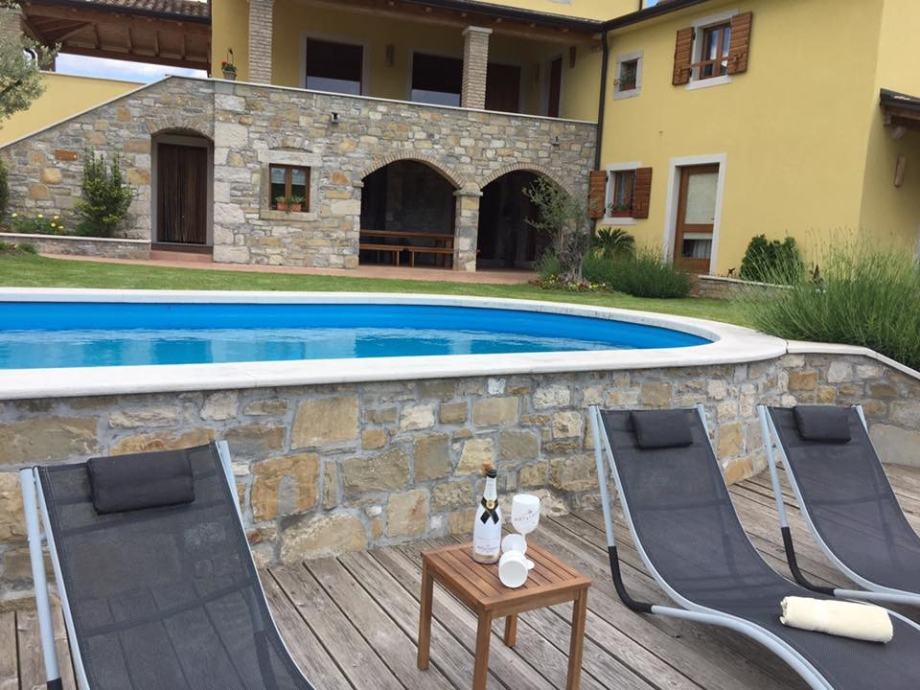 Prodaje se vila s bazenom smještena na rubu pitoresknog srednjovjekovnog sela u srcu istarskog krajolika. Locirana je na mirnom i tihom području, u okruženju kojeg su maslinici i seoske kuće raštrkane po lokalnim brdima s lijepim pogledom na jezero Butoniga. Vila je rustikalno uređena te su korišteni lokalni, prirodni materijali i tradicionalne tehnike, veći dio namještaja je unikatan, ručno izrađen.Vila je turistički valorizirana te nudi smještaj u dvije stambene jedinice. Prva se sastoji od prostranog dnevnog boravka s kaminom, bogato opremljene kuhinje, blagovaonice i kupaone u prizemlju, dvije spavaće sobe te prostrane kupaonice s hidromasažnom kadom i tuš kabinom na katu.