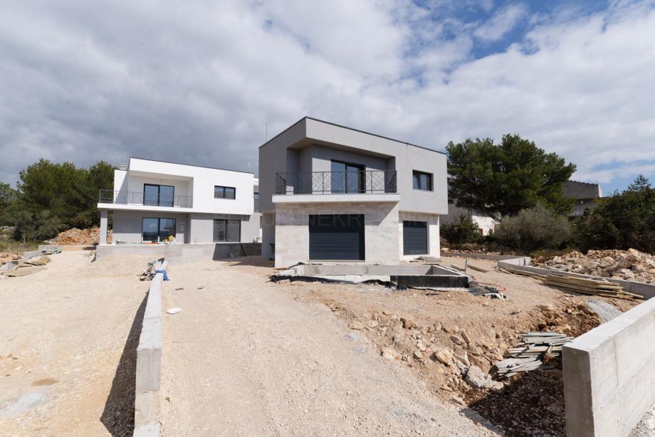 Prodaje se predivna moderna kuća s bazenom u Podsolarskom- Šibenik. Kuća je samostojeća. Sastoji se od prizemlja i kata. U prizemlju se nalazi dnevni dio s kuhinjom i blagovaonom u jednoj cjelini, jedna spavaća soba s kupaonom i garderobom, spremište te gostinjski toalet. Iz dnevnog dijela je izlaz nanatkrivenu terasu ispred koje je sunčalište s bazenom. Također spavaća soba u prizemlju ima izlaz na manju natkrivenu terasu. Unutarnjim stubištem se ide na kat gdje su još smještene tri spavaće sobe od kojih jedna ima i svoju kupaonu, garderobu te manju natkrivenu terasu, dok druge dvije spavaće sobe dijele kupaonu te imaju izlaz na zajedničku terasu. Kvalitetna gradnja, moderna dizajn, lokacija...sve su to odlike ove nekretnine.