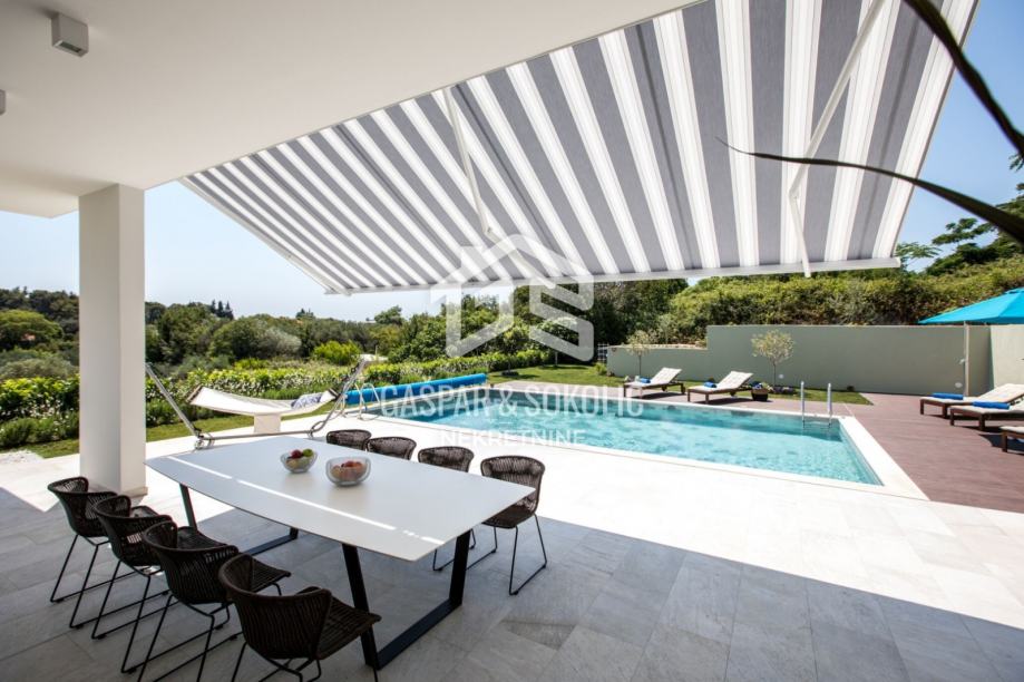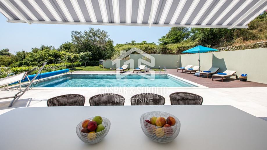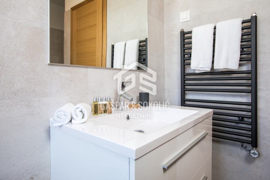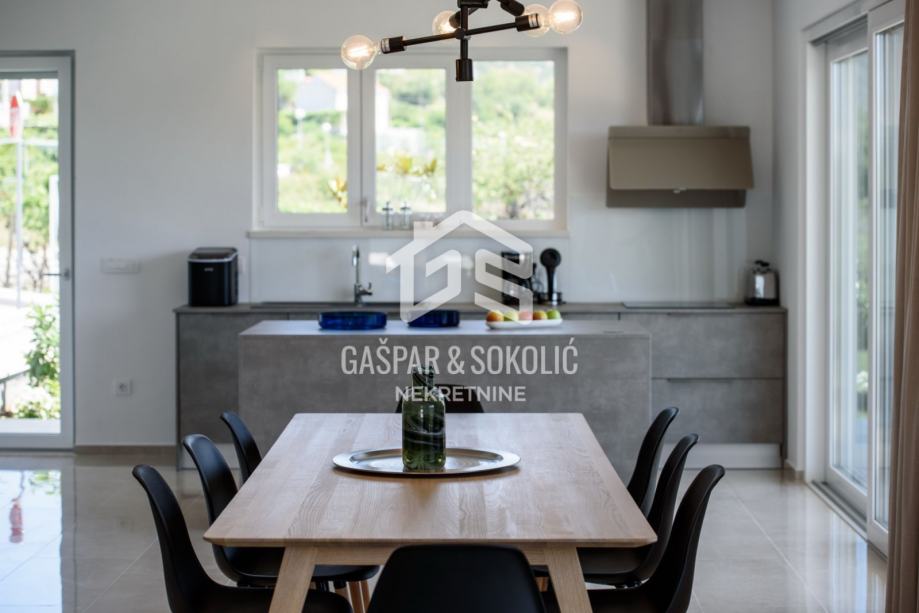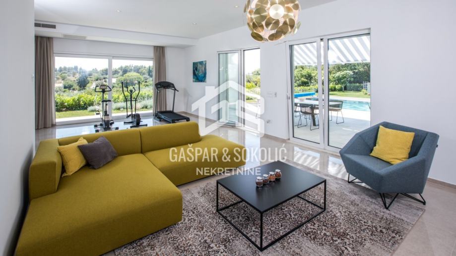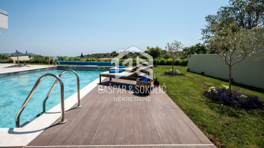 Kuća se sastoji od prizemlja, kata, te krovne terase na koju se izlazi iz potkrovlja. Dvorište je predivno uređeno, sa dodatkom bazena, dimenzija 9mx5m koji ima mogućnost dogrijavanja posebnom dizalicom topline te mu je ugrađen sustav protustrujnog plivanja.