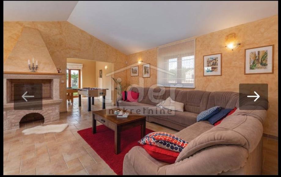 Vanjski dio nekretnine je prekrasno uređen, s bazenom od 4,5 x 9 metara, sunčalištem, prostorom za roštiljanje i objedovanje. Tu je također prostor s dječjim igralištem, gdje cijela obitelj može uživati u svježem zraku i lijepom okolišu. Kuća ima instaliran video nadzor.