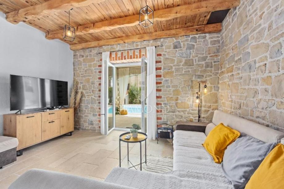 Izgrađena 2012. godine, vila je potpuno renovirana 2022. s naglaskom na moderne instalacije, kvalitetne materijale i estetske detalje koji je čine savršenim mjestom za opuštanje i uživanje. Prostrano prizemlje oduševljava elegantnom kuhinjom opremljenom najmodernijim uređajima, udobnim dnevnim boravkom obogaćenim prekrasnim kaminom i blagovaonicom koja prima osam osoba. Ovdje se također nalaze ured, WC i spremište, osiguravajući funkcionalnost i udobnost. Unutarnje stepenice vode na kat gdje tri prostrane spavaće sobe, dvije luksuzne kupaonice i velika terasa pružaju oazu privatnosti s očaravajućim pogledom na okolnu prirodu.