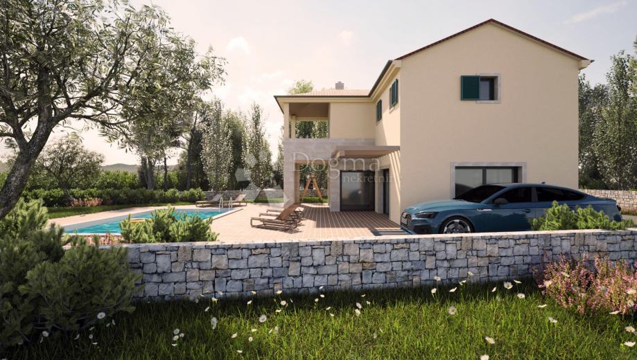 Dvorište će biti ograđeno te će raspolagati bazenom od 32m2, zelenom površinom te više parkirnih mjesta.