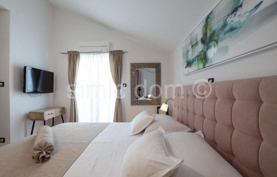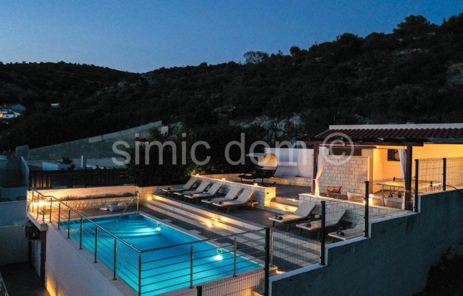 Posredujemo u prodaji vrlo šarmantne, prostrane i ukusno uređene vile na lokaciji koja je smještena nekoliko koraka od kristalnog mora rogozničkih uvala. Vila ima površinu od 200m2 te se prostire trima etažama. Sastoji se od dva potpuno opremljena i namještena apartmana od kojih svaki ima dvije spavaće sobe, kupaonicu, kuhinju te impresivne dnevne boravke s blagovaonskim prostorom. Upravo se iz dnevnih boravaka izlazi na velike terase, idealne za mirne ljetne večeri. Nadalje, iz cijele se vile pruža otvoren pogled na more i uvalu. Posebna je prednost vile impozantan vanjski prostor koji nudi bazen i šarmantno uređeno sunčalište. U vili je dostupna i sauna, a osigurana je i garaža. Vila je prekrasno uređena i opremljena kvalitetnim namještajem te se kao takva i prodaje. Vrlo mirna lokacija, iznimna blizina mora, visoka razina kvalitete kuće i nezaboravan pogled odličan su izbor za vašu mirnu destinaciju, ali i pruža mogućnosti za najam. Vlasništvo uredno.