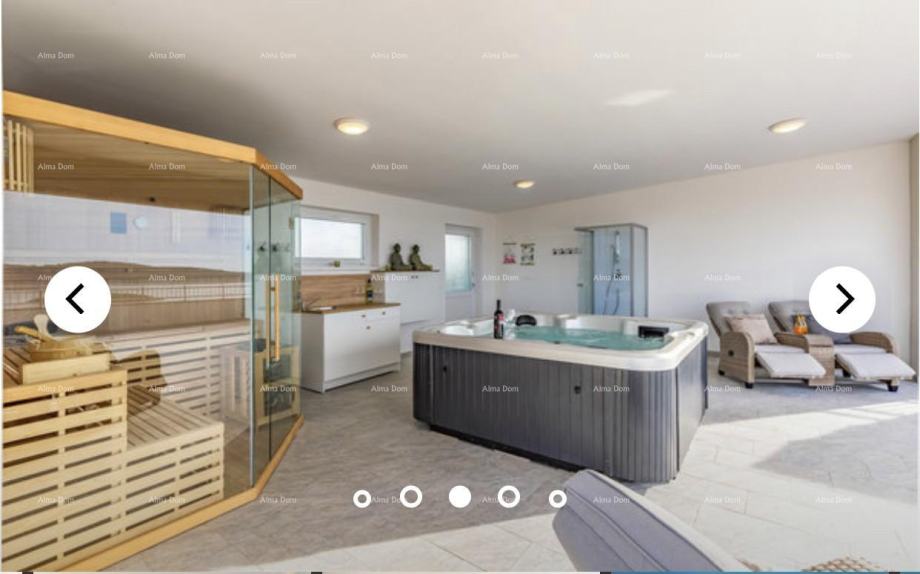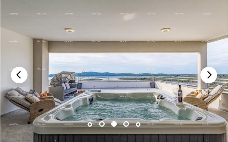 Na drugom katu se nalazi terasa preko cijelog kata, u natkrivenom dijelu su jaccuzzi, sauna te ljetna kuhinja.