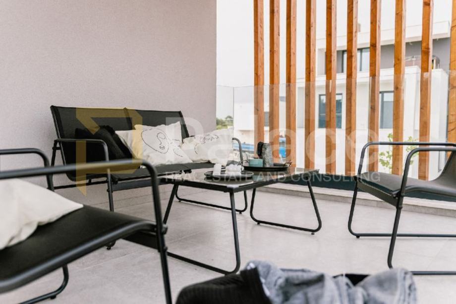 Daje se u najam savršeno uređena, moderna kuća na Srimi. Kuća po mjeri moderne obitelji. Ima četiri spavaće sobe, od kojih je jedna u prizemlju, a tri na katu kuće. Jedna soba na katu ima vlastitu kupaonicu i balkon, dok druge dvije sobe dijele balkon.