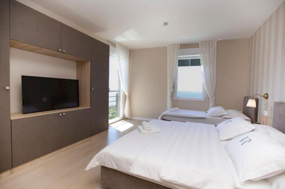 Na prvom katu nalaze se još dvije spavaće sobe s bračnim krevetima i kupaonicama. Terasa na prvom katu nudi vam dodatno privatno mjesto za uživanje u panoramskom pogledu.