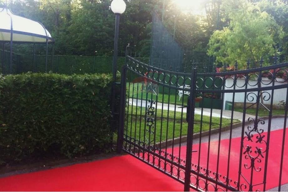 - wedding kompleksa : svečane dvorane površine cca 600 m2 (može primiti do 400 gostiju) u sklopu koje se nalazi funkcionalna kuhinja sa svim aparatima površine 30 m2 ( priprema hrane i direktno iznošenje gostima na stol) te moderno opremljenog sanitarnog čvora + tuš kabina i terase od 630 m2 na kojoj se održavju prijemi (piće dobrodošlice te toplo -hladn apredjela)
