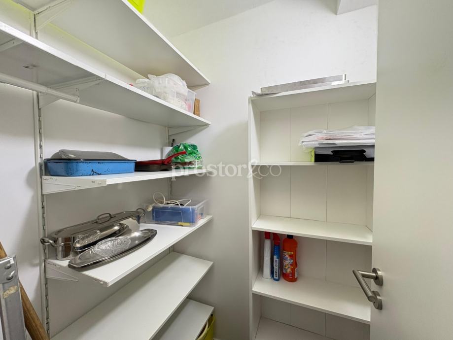 Stan ima plinsko etažno grijanje, kuhinja je opremljena s indukcijskim kuhalom i napom, frižiderom s ledenicom, perilicom suđa 45L. Prostran hodnik sa spremištem omogućuje dovoljno prostora za odlaganje i vješanje stvari. Stanu pripada i veliko spremište u podrumu, idealno za dodatno odlaganje, u cijeni.