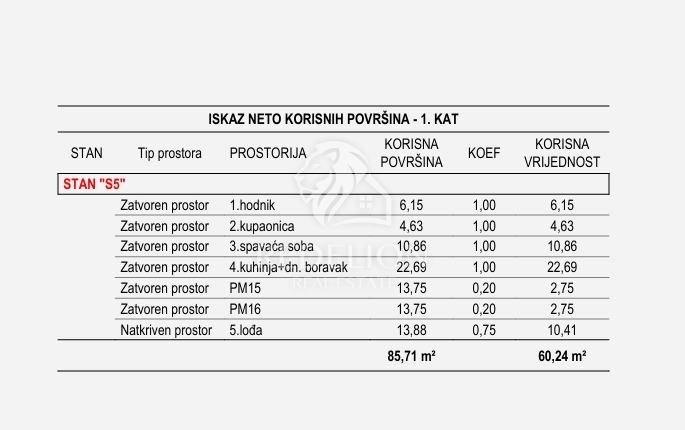 Predprodaja! 1-sobni stan 60,24 m² na 1. katu – Novogradnja Zadar