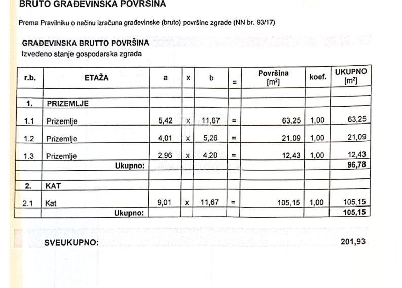 Prodajemo obiteljsku kuću od cca 120 m² s gospodarskom zgradom od cca 100 m² u tlocrtu, sve na okućnici od 7.385 m². Kuća se sastoji od pet prostorija od kojih tri mogu biti ili već jesu spavaonice s mogućnošću uređenja potkrovlja. Dio kuće izgrađen je 2010. kada je i dijelom obnovljen i postojeći dio. Od priključaka tu su struja, voda i plin. Za sve objekte izdana je uporabna dozvola, vlasništvo je 1/1, bez tereta.